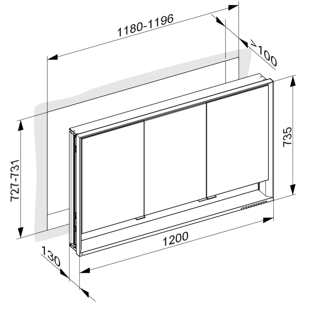 KEUCO Spiegelschrank kurze Türen Royal Lumos 120 x 73,5 x 13 cm, mit Ablagefach, Wandeinbau, 3-türig, silber-eloxiert K22757392