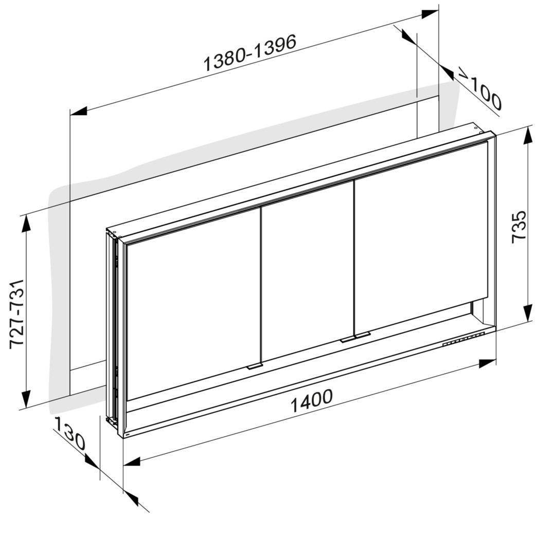 KEUCO Spiegelschrank kurze Türen Royal Lumos 140 x 73,5 x 16,5 cm, UP, 3-türig K20593315
