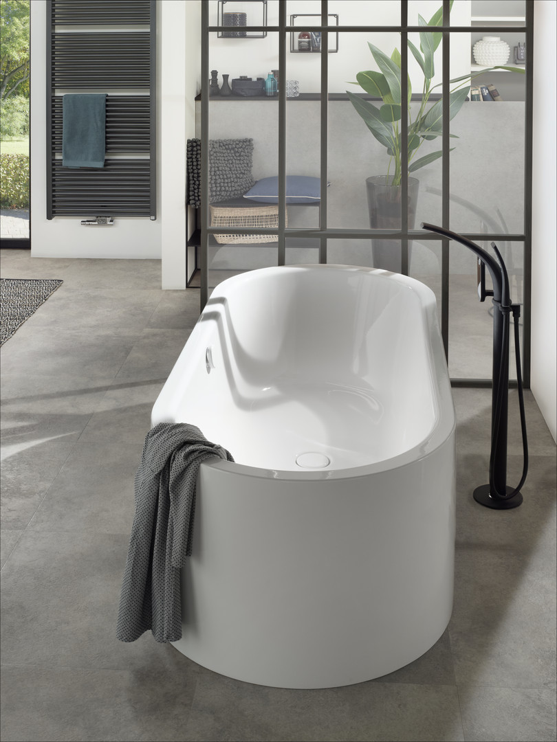 Kaldewei Badewanne Meisterstück Centro Duo oval-1127 170x75cm, freistehend, Schallschutz, weiß, 4040, Spezial-Ablaufgarnitur