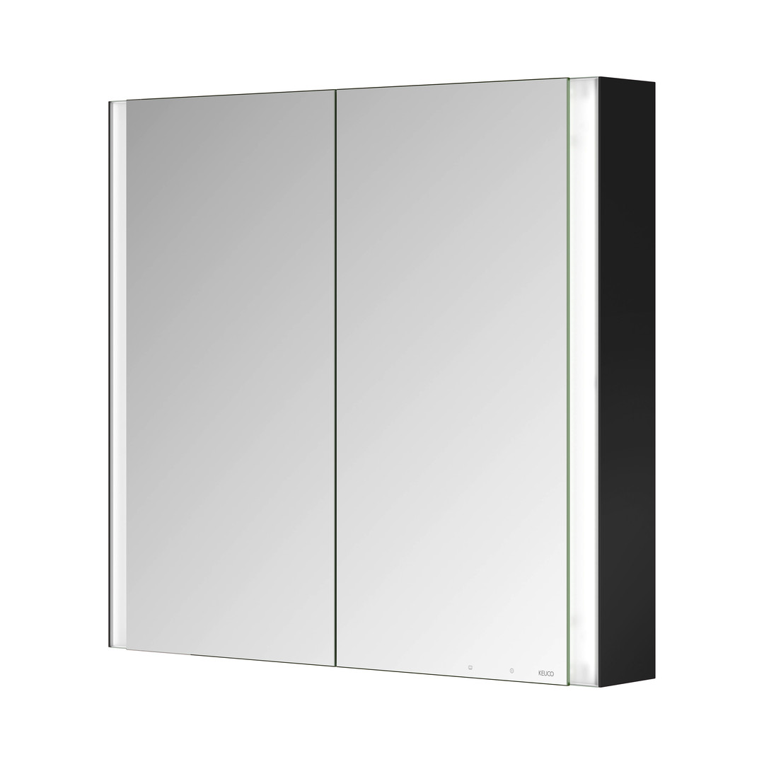 KEUCO Spiegelschrank 2-türig Somaris 80 x 71 x 12,7 cm, schwarz matt, Wandvorbau, Spiegelheizung