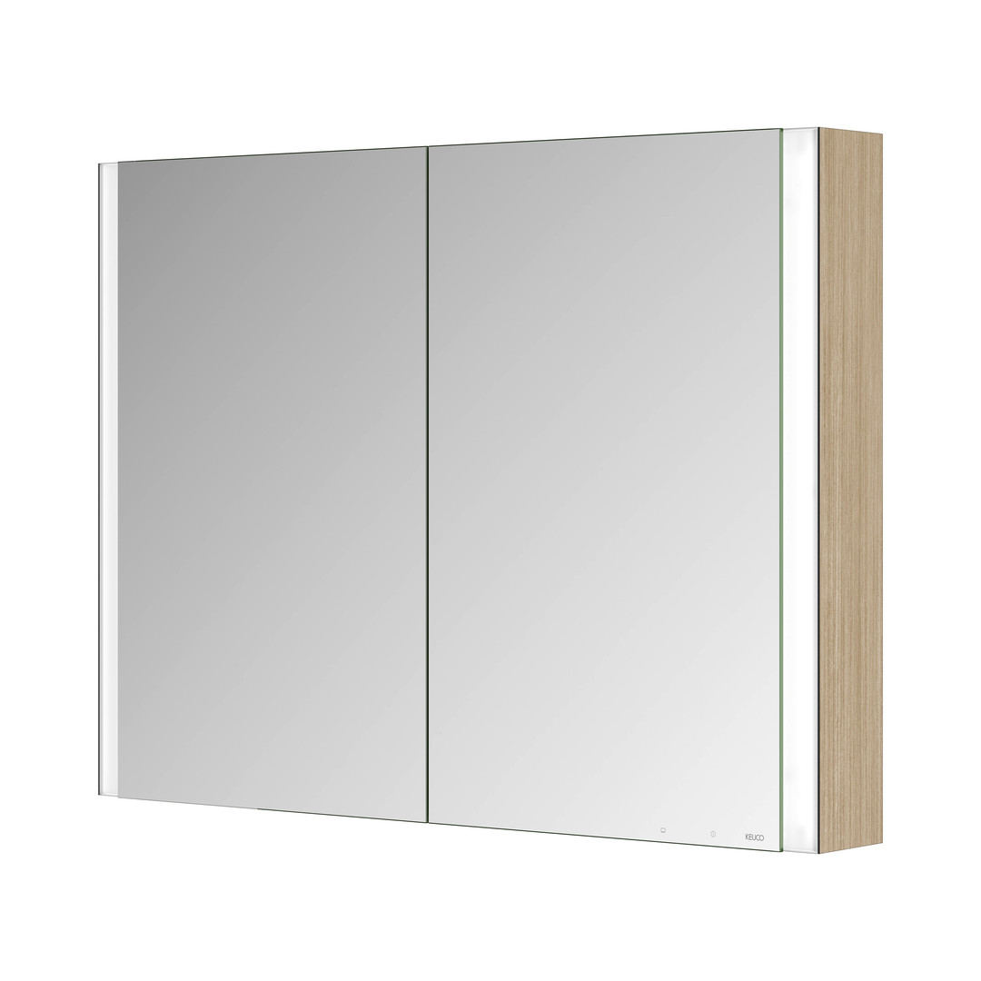 KEUCO Spiegelschrank 2-türig Somaris 100 x 71 x 12,7 cm, Eiche hell Dekor, AP, mit Spiegelheizung
