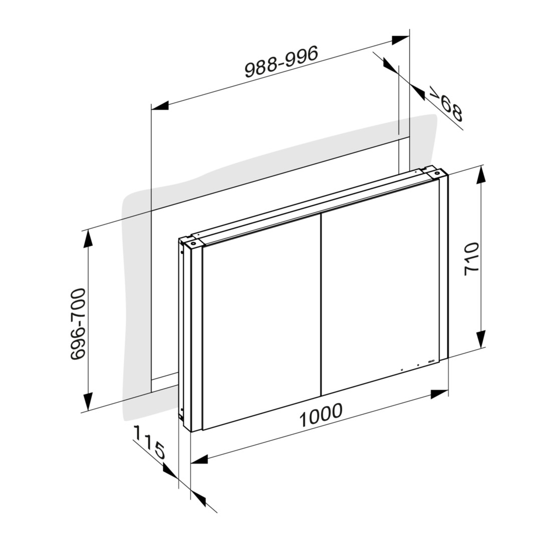 KEUCO Spiegelschrank 2-türig Somaris 100 x 71 x 11,5 cm, verspiegelt, Wandeinbau, Spiegelheizung K22757505