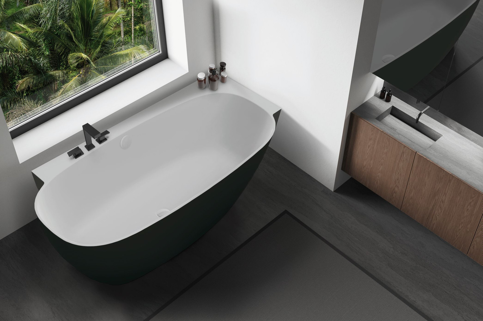 Hoesch Freisteh-Badewanne LABRILLIANTE Überlaufgarnitur Combi, schwarz-weiß, 180x80cm, rechts