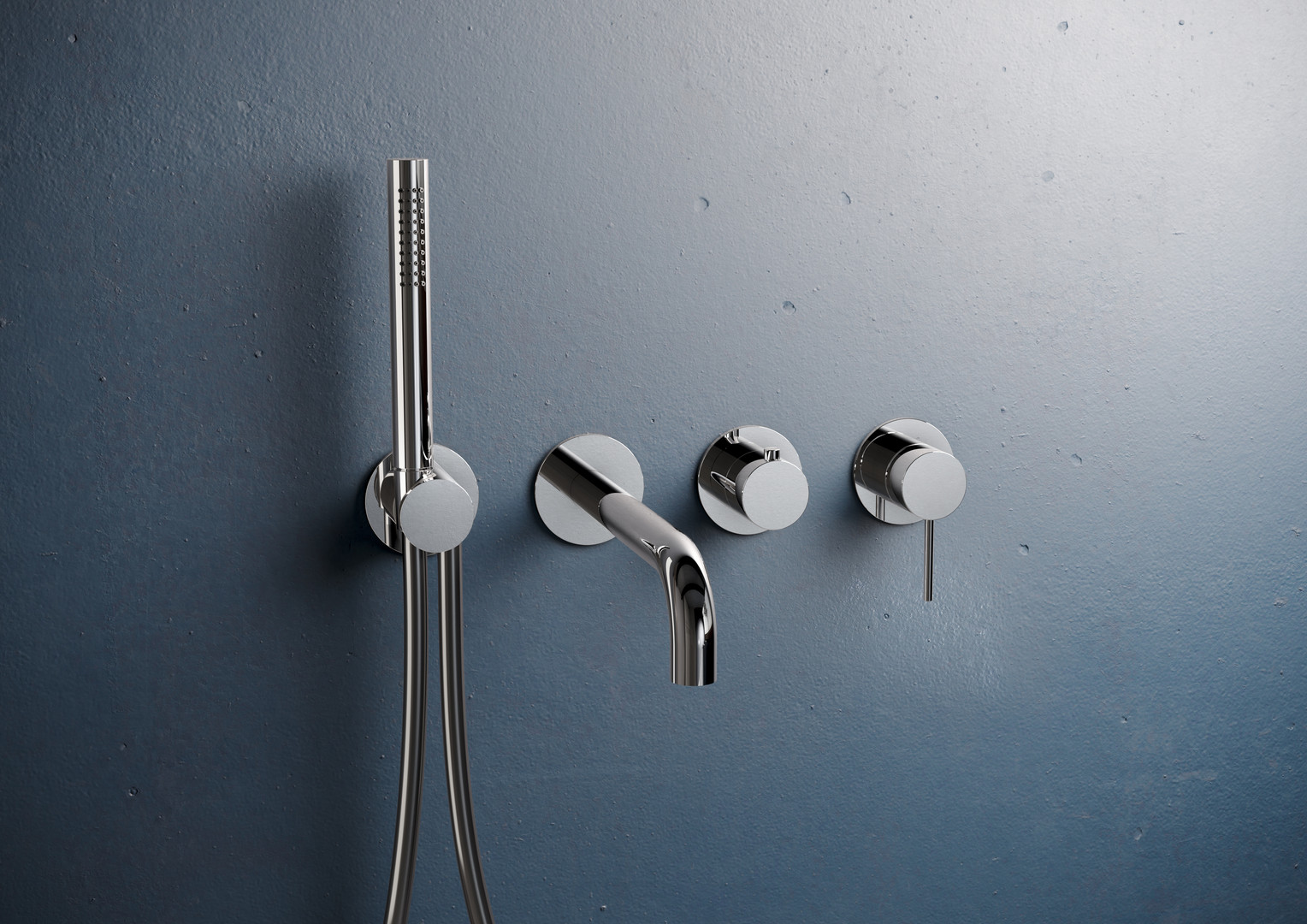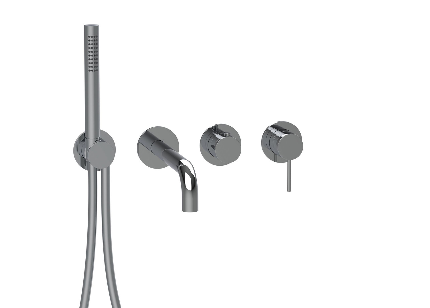 Herzbach Fertigmontageset MODUL7 Brause-Einhebelmischer, mit Wandauslauf und Stabhandbrause, 2 Verbraucher, chrom