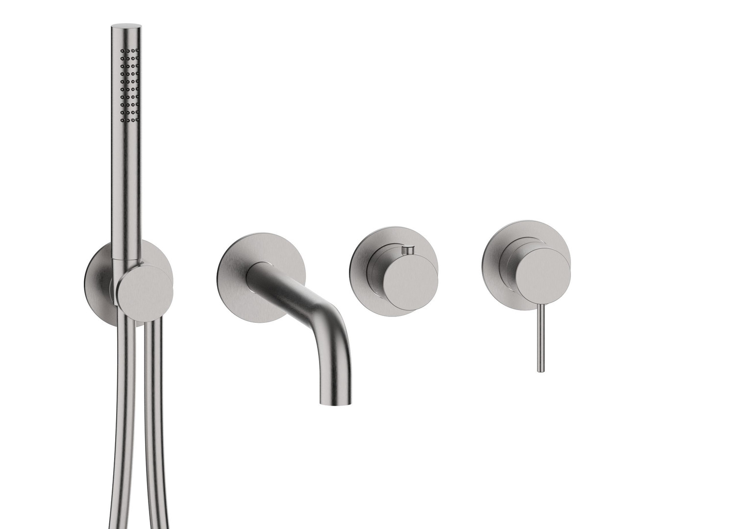 Herzbach Fertigmontageset MODUL7 Brause-Einhebelmischer, mit Wandauslauf und Stabhandbrause, 2 Verbraucher, Edelstahl gebürstet