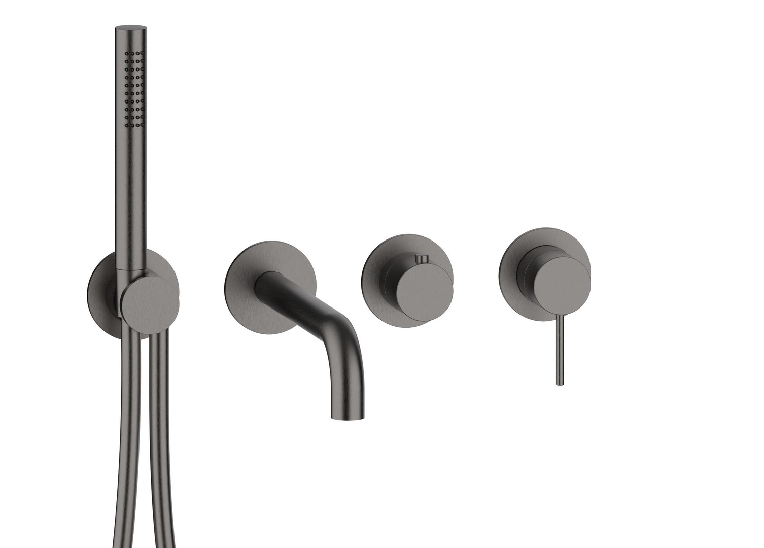 Herzbach Fertigmontageset MODUL7 Brause-Einhebelmischer, mit Wandauslauf und Stabhandbrause, 2 Verbraucher, black Steel