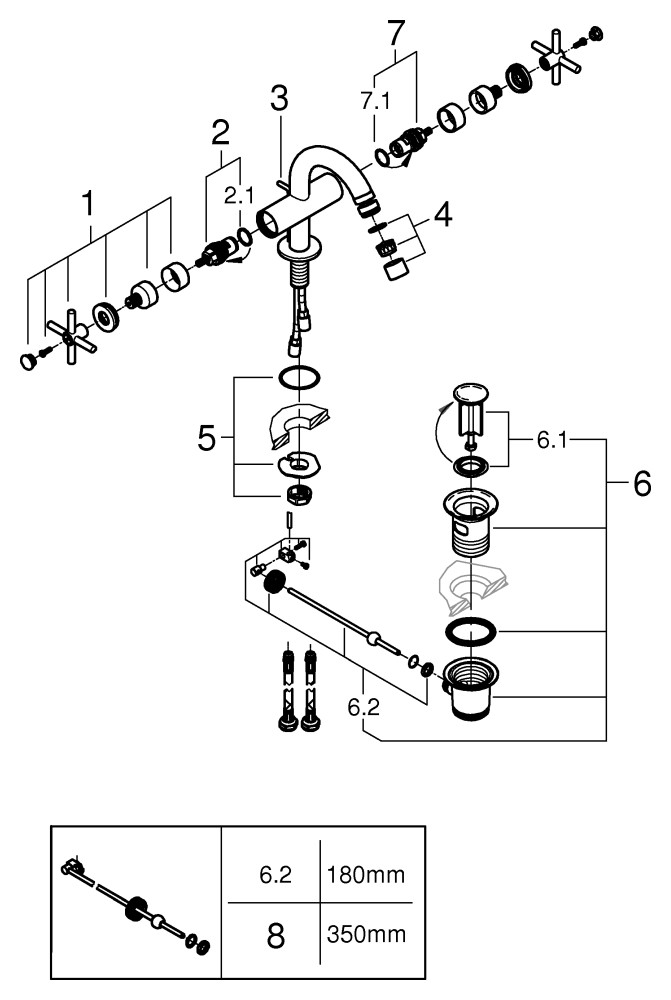 GROHE Bidet-Zweigriff-Armatur Atrio 1/2", mit Kreuzgriffen, Zugstangen-Ablaufgarnitur, chrom K20547276