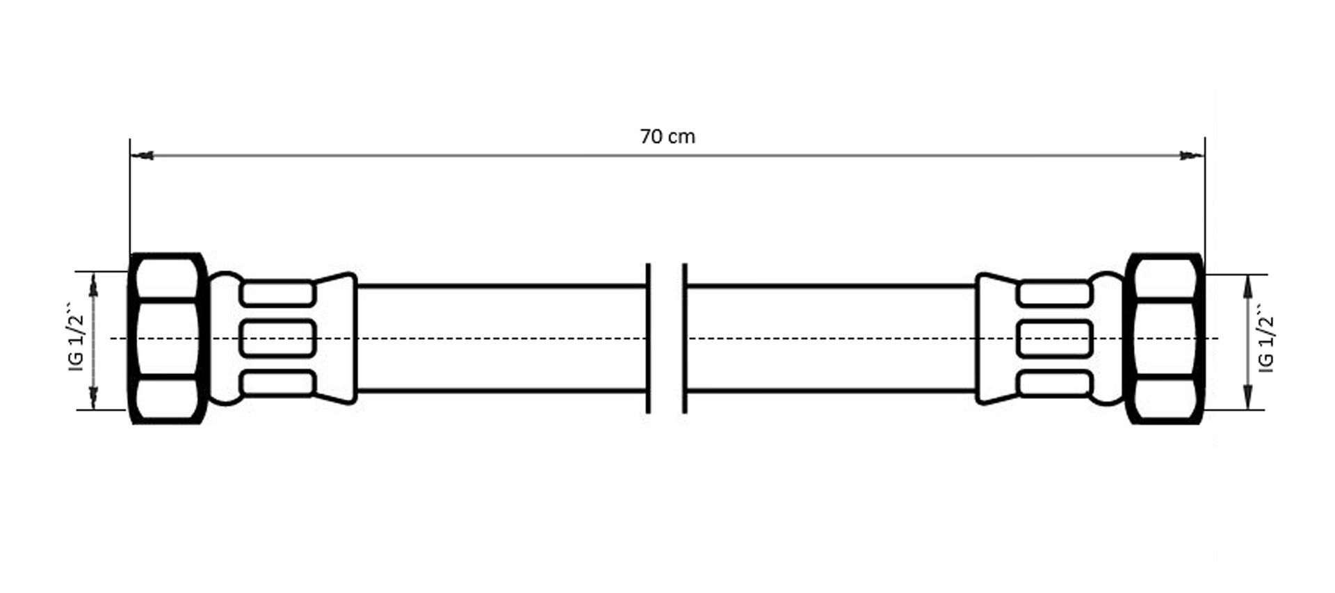 DN 13, Schutz für Heizungs- und Klimatechnik, Sauerstoffdiffusionsdichter Anschlussshlauch mit Edelstahlumflechtung, mechanische Belastbarkeit, Anwendungsbereich bei Kühl- und Heizungssystemen, erfüllt DIN 4726 Norm, reduzierte Korrosionsbildung und Verschlammung in Heiz- und Kühlsystemen, biegsam, geeignet für Systeme mit max. 40% Glykolgemisch, mit Edelstahlumflechtung, Anschlüsse INOX AISI 304, Betriebsdruck 10 bar, Betriebstemperatur max. 70 °C