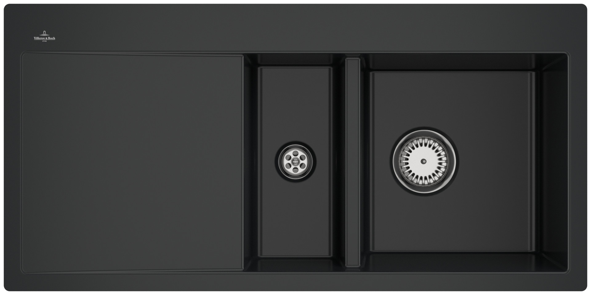 V&B Flächenbündige Spüle Subway 60 Flat rechts, mit Ablaufgarnitur, Handbetätigung, pure black