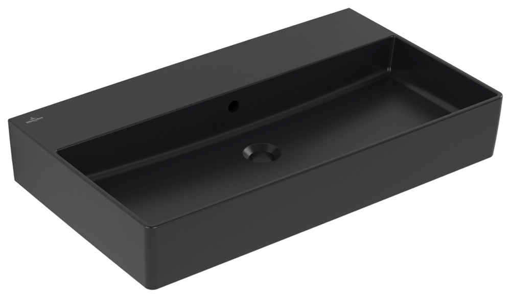 V&B Waschtisch Memento 2.0 80x47cm, geschliffen, mit Überlauf, pure black C-plus