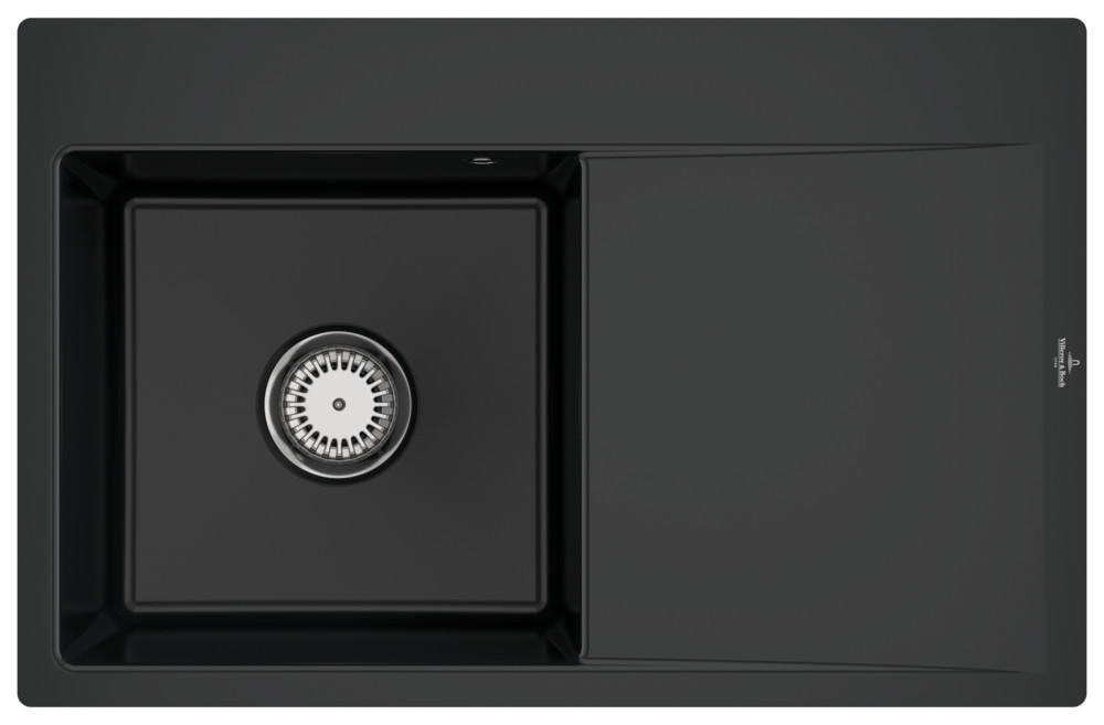 V&B Spüle Subway Style 45 Flat links, mit Ablaufgarnitur, Handbetätigung, pure black