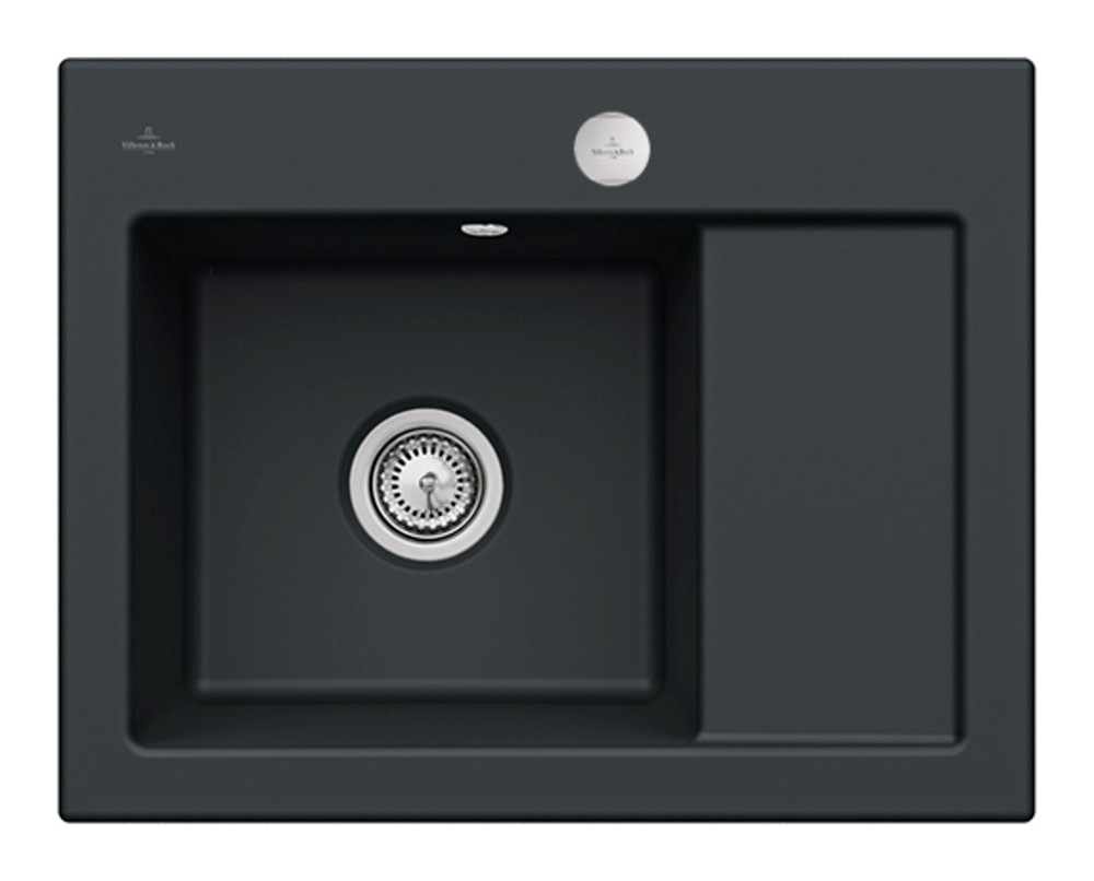 V&B Spüle Subway 45 Compact links, mit Ablaufgarnitur, Excenterbetätigung, pure black