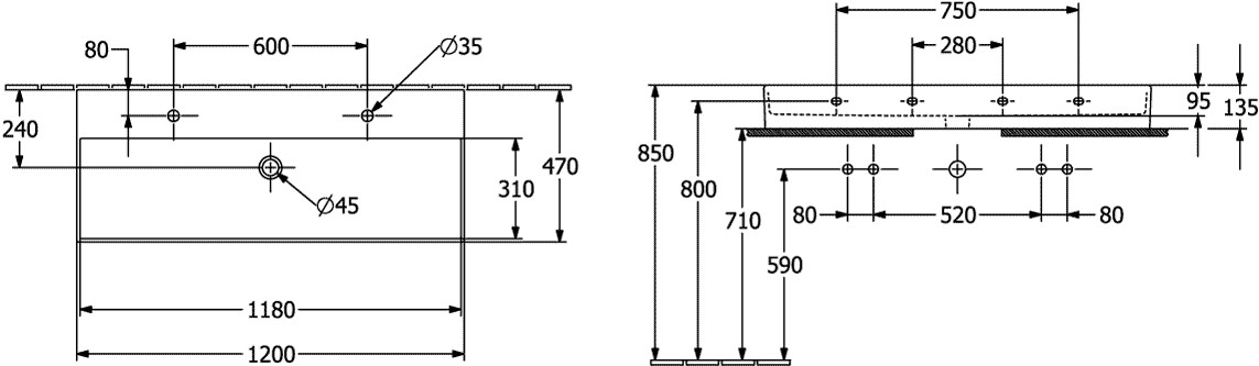 Rechteck, Unterseite geschliffen, für zwei 1-Loch Armaturen geeignet, Hahnlöcher durchgestochen, bei 2 Einhebelmischern und Excenterbetätigung oder in Verbindung mit Kniehebelventil, sowie Push-open Ventil bitte Durchflussleistung von max. 7,5 l/min pro Armatur nicht überschreiten, mit Überlauf, EN 31, EN 14688, mit Ausschnittschablone