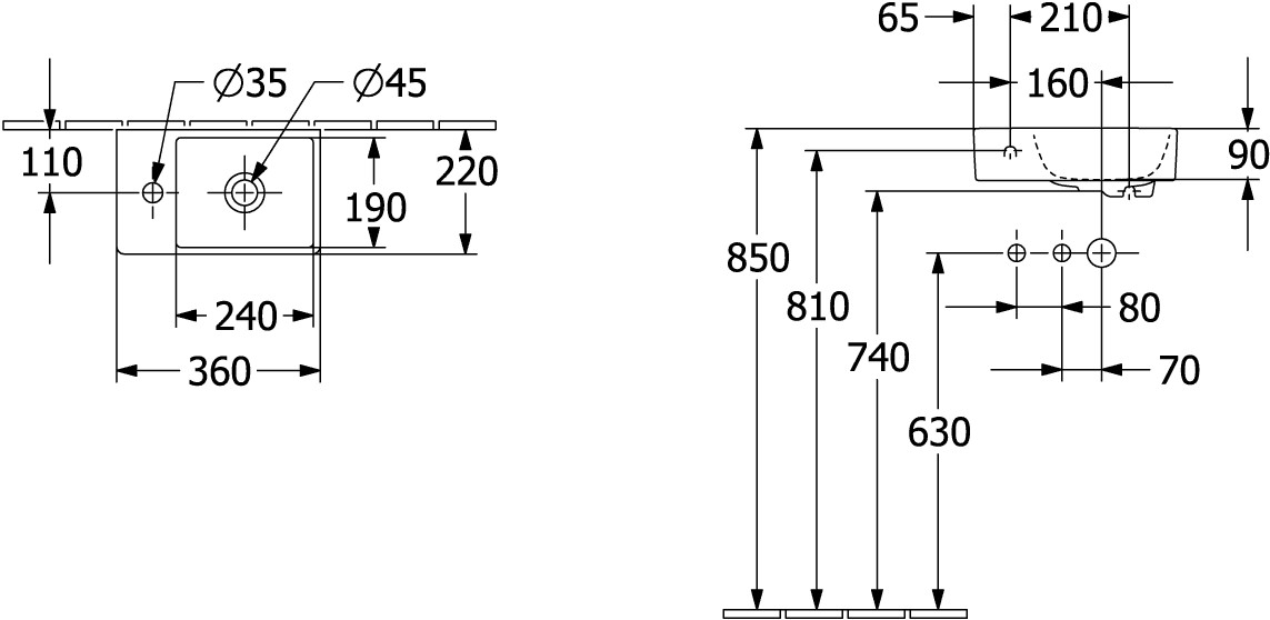 | Anzahl der Hahnlöcher je Waschplatz | 1 |
