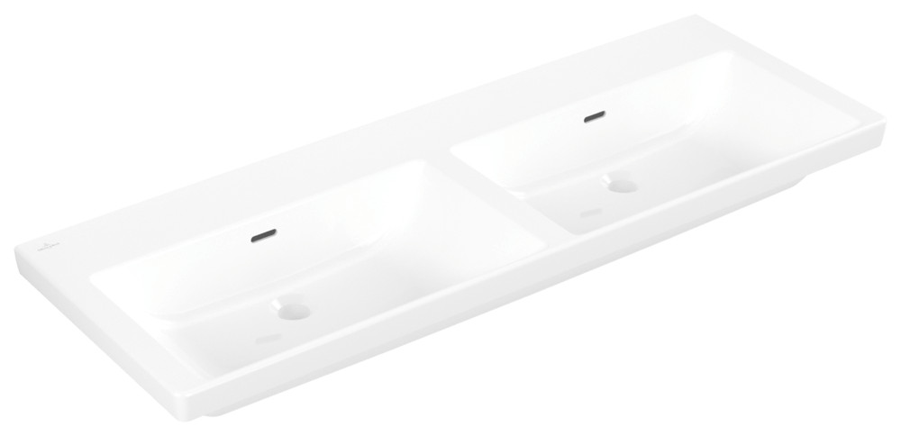 V&B Schrank-Doppelwaschtisch Subway 3.0 130x47cm, eckig, mit je 1 Hahnloch/ohne Überlauf, weiß C-plus K20563121