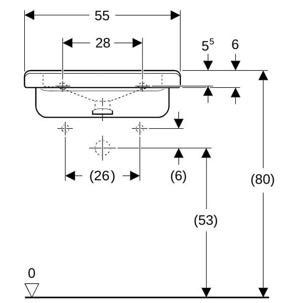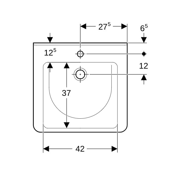 Geberit Waschtisch Renova Comfort 55x52,5cm, barrierefrei, ohne Hahnloch, ohne Überlauf, weiß K20561210