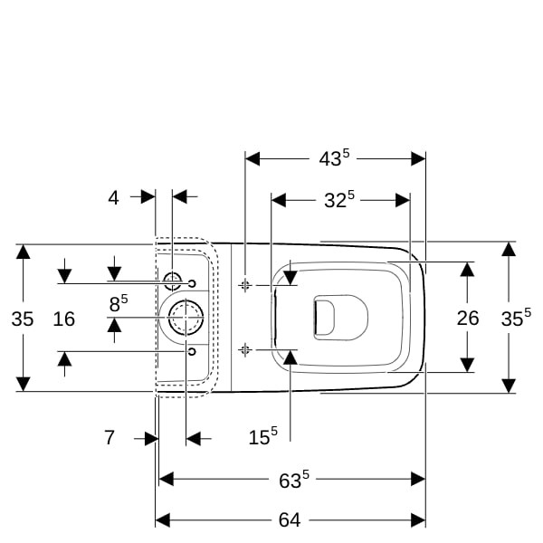 Geberit Stand-Tiefspül-WC iCon Square 35,5x63,5, für AP-Spülkasten aufgesetzt, geschlossen, Rimfree, weiß K20561454