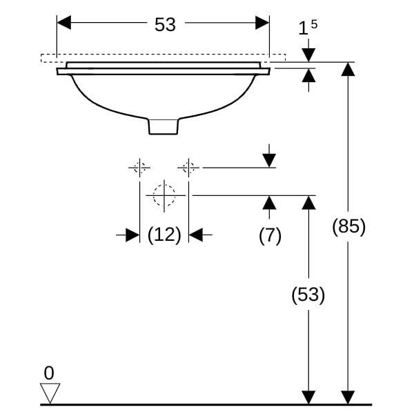 Geberit Unterbau-Waschtisch VariForm 53x44cm, ohne Hahnloch, mit Überlauf, rechteckig, weiß
