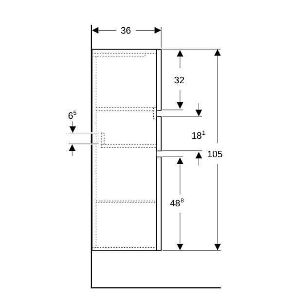 Geberit Hochschrank Renova Plan 39x105x36cm, 2 Türen, 1 Schublade, weiß, lackiert hochglänzend K20597369