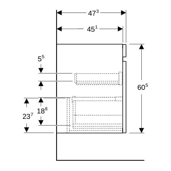 Geberit Waschtisch-Unterschrank Renova Plan für Möbelwaschtisch, mit Schublade, 53,8 x 60,5 x 47,3 cm, weiß K20597376