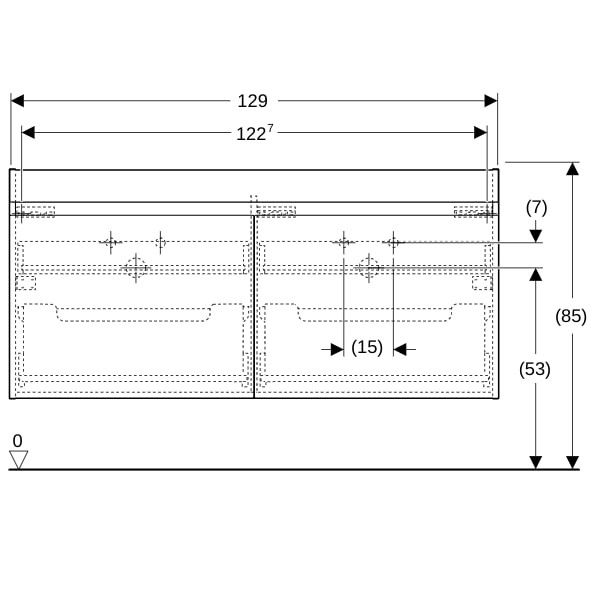 Geberit Waschtisch-Unterschrank Renova Plan für Möbelwaschtisch, mit Schublade, 129 x 60,5 x 47,3 cm, nussbaum hickory