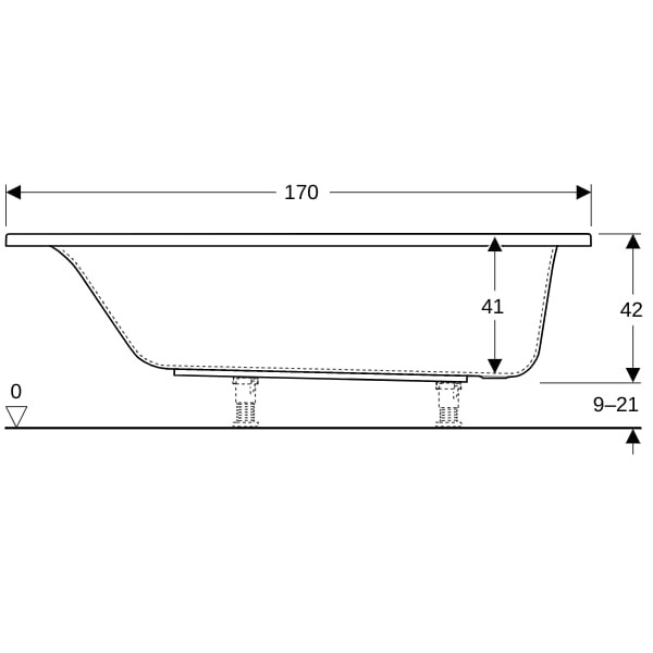 für private Badezimmer und Hotels, zum Einbau mit Badewannenfüßen oder Wannenträgern, Tiefe 42 cm, Sanitär-Acryl
