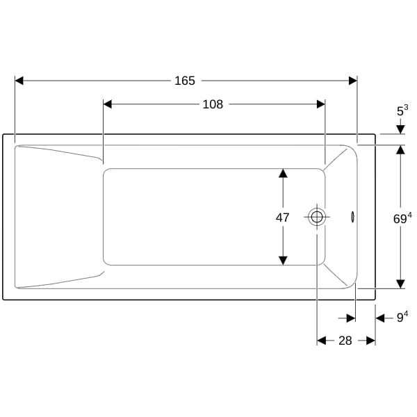 Geberit Badewanne Renova Plan 160 x 75 cm, Rechteck, Abgang am Fußende, weiß K20735191