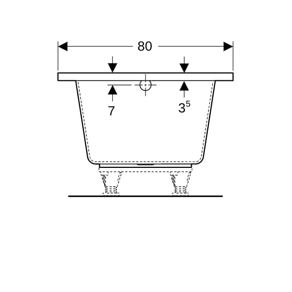 Geberit Badewanne Renova Plan 180 x 80 cm, Rechteck, Abgang am Fußende, weiß K20735193
