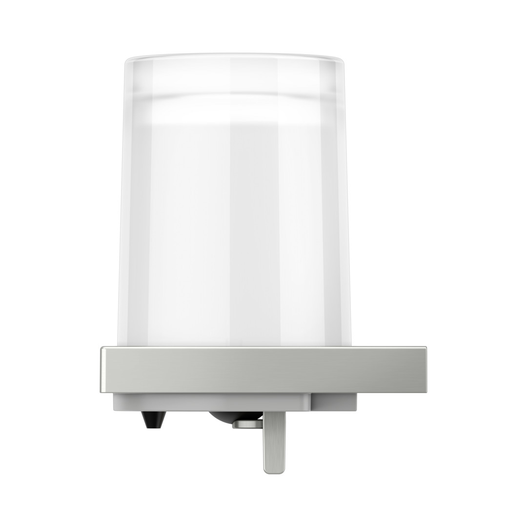 Füllmenge 180 ml, Dosiermenge 0,5 ml/Hub, Betätigung von unten, Befüllung von oben, Ecktkristall-Stülpglas mattiert, verdeckte Befestigung, zum Schrauben, mit Befestigungs-Set