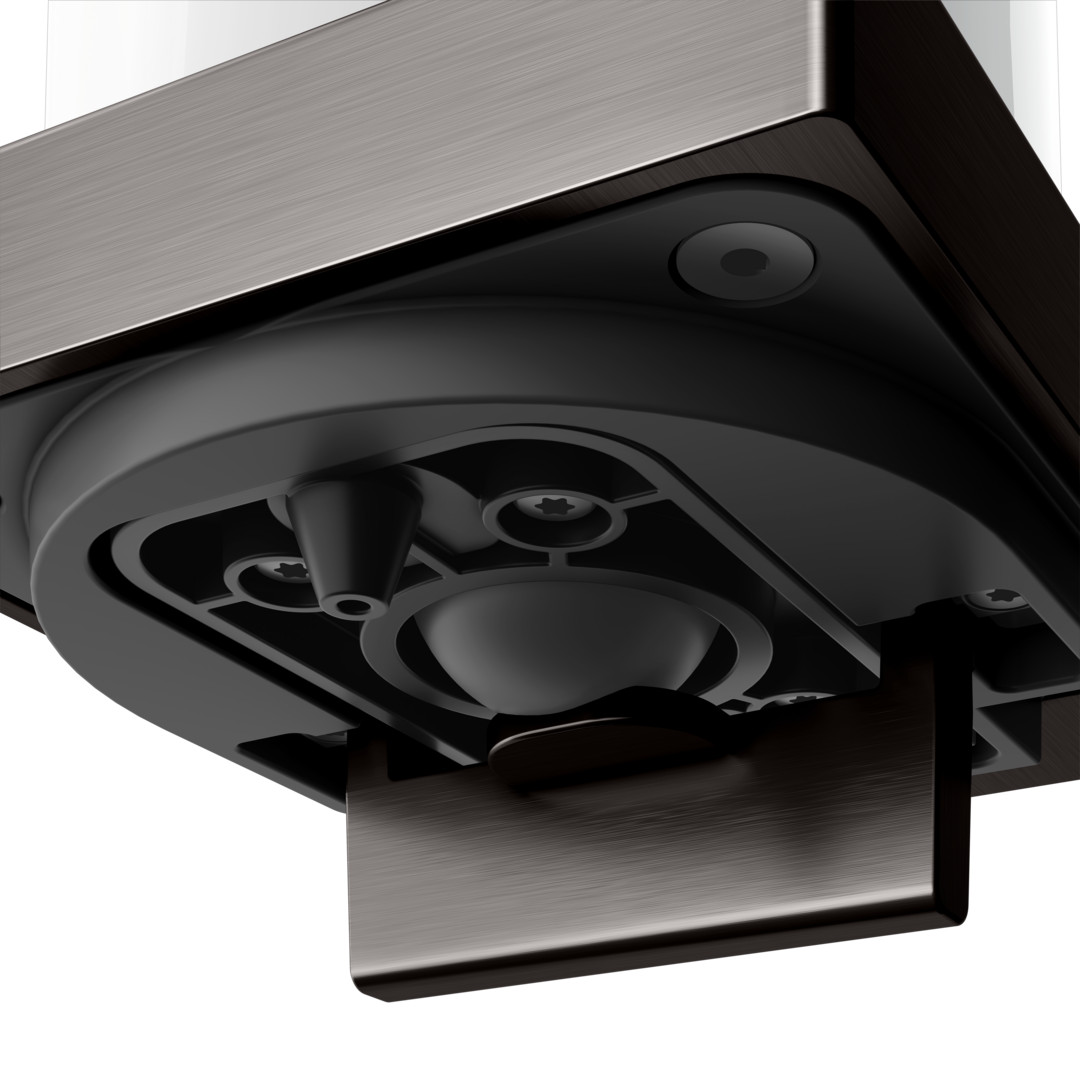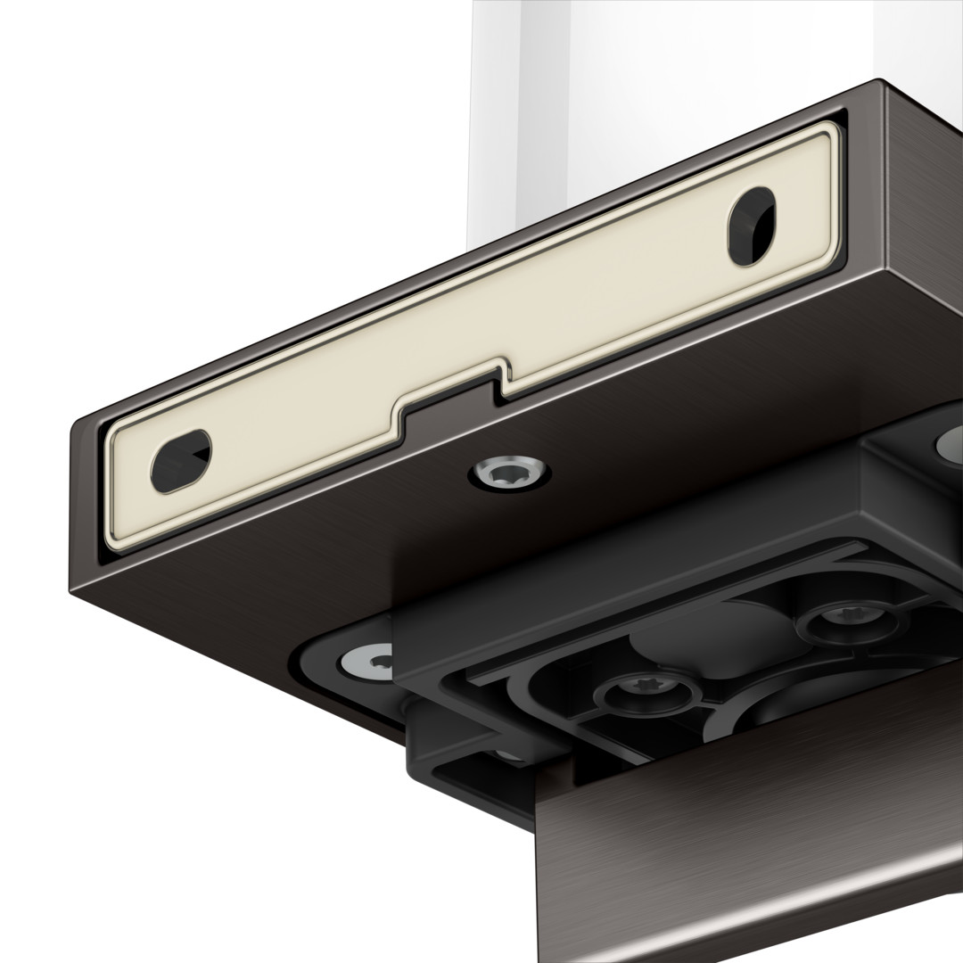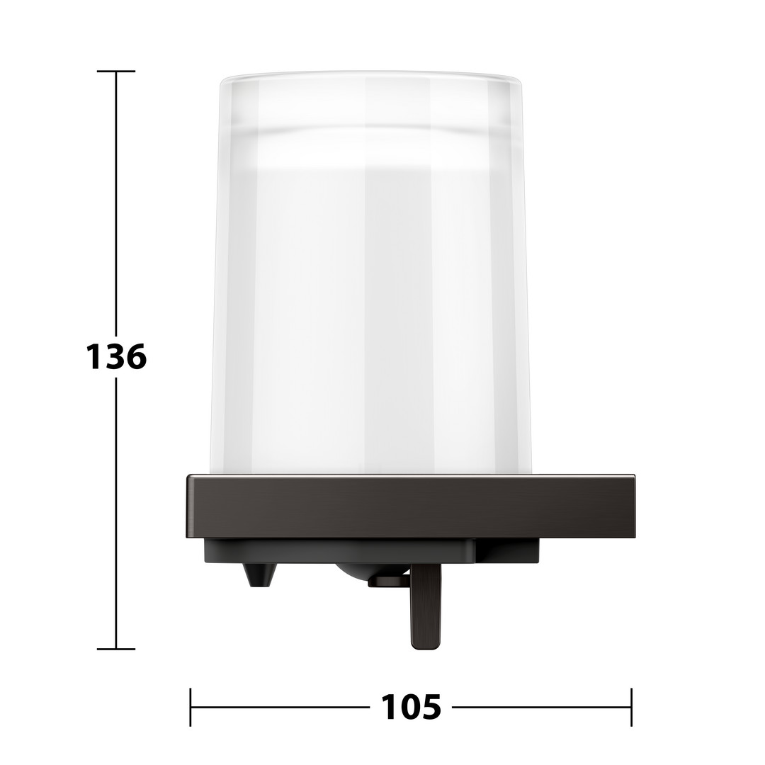 Füllmenge 180 ml, Dosiermenge 0,5 ml/Hub, Betätigung von unten, Befüllung von oben, Ecktkristall-Stülpglas mattiert, verdeckte Befestigung, zum Schrauben, mit Befestigungs-Set