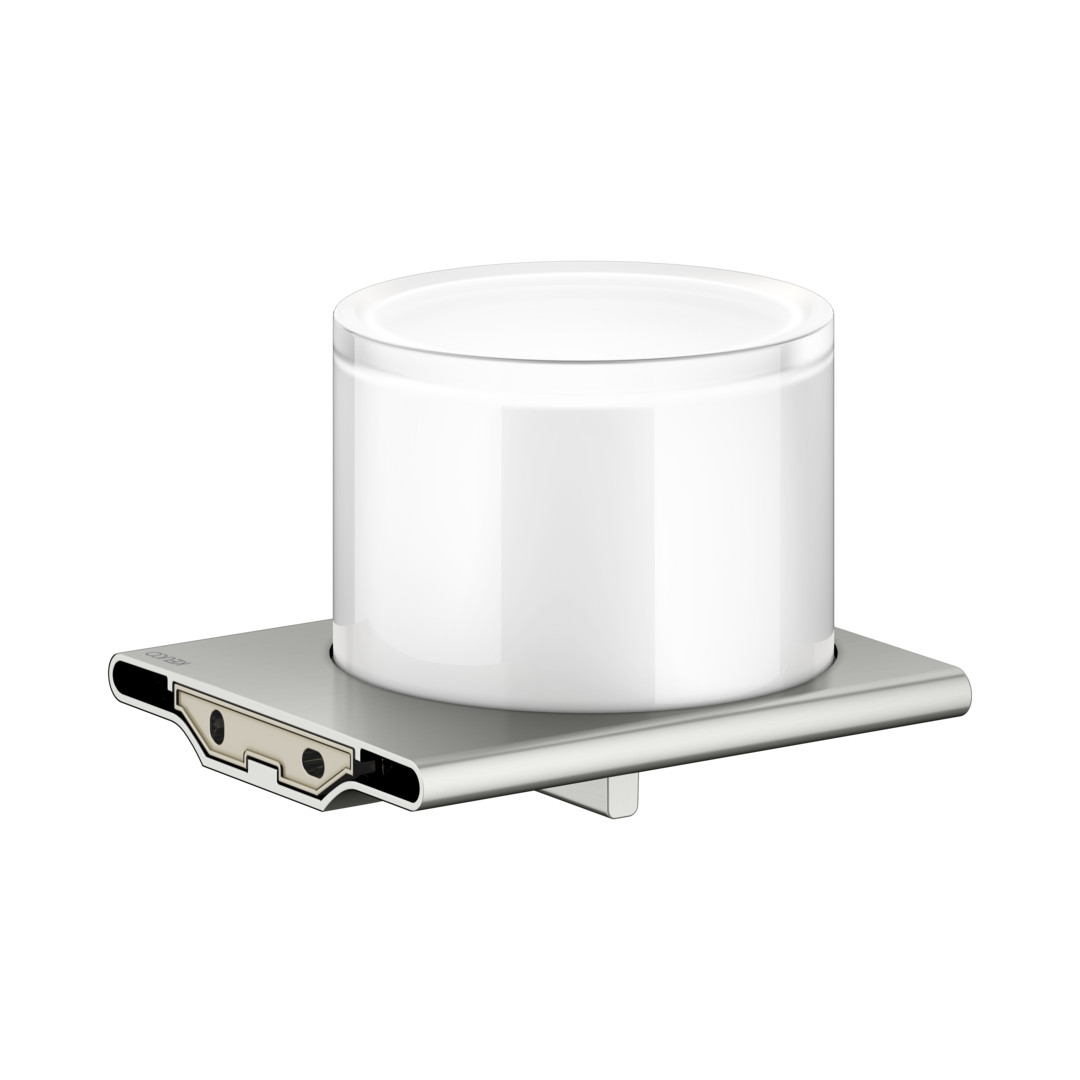 Füllmenge 150 ml, Dosiermenge 0,5 ml/Hub, Betätigung von unten, Befüllung von oben, Echtkristall-Stülpglas mattiert, verdeckte Befestigung, zum Schrauben, mit Befestigungs-Set