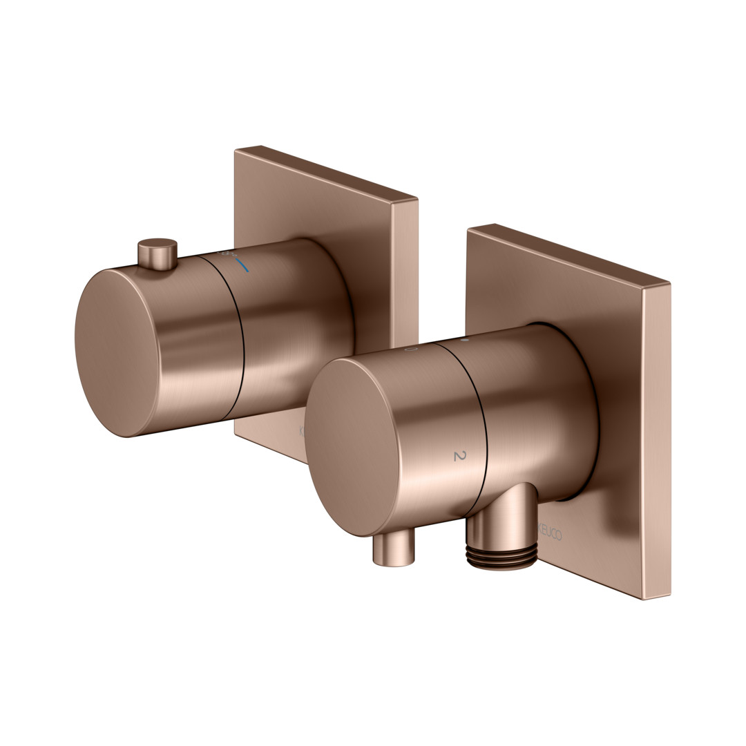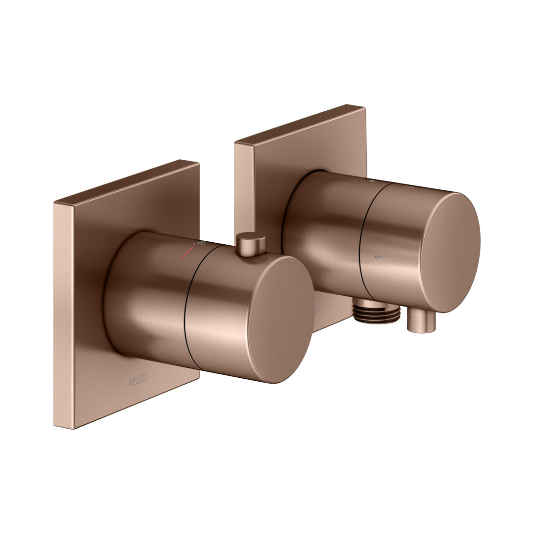 KEUCO Fertigmontageset Edition 11 Unterputz-Thermostatarmatur, mit Schlauchanschluss, für 2 Verbraucher, rotgold gebürstet