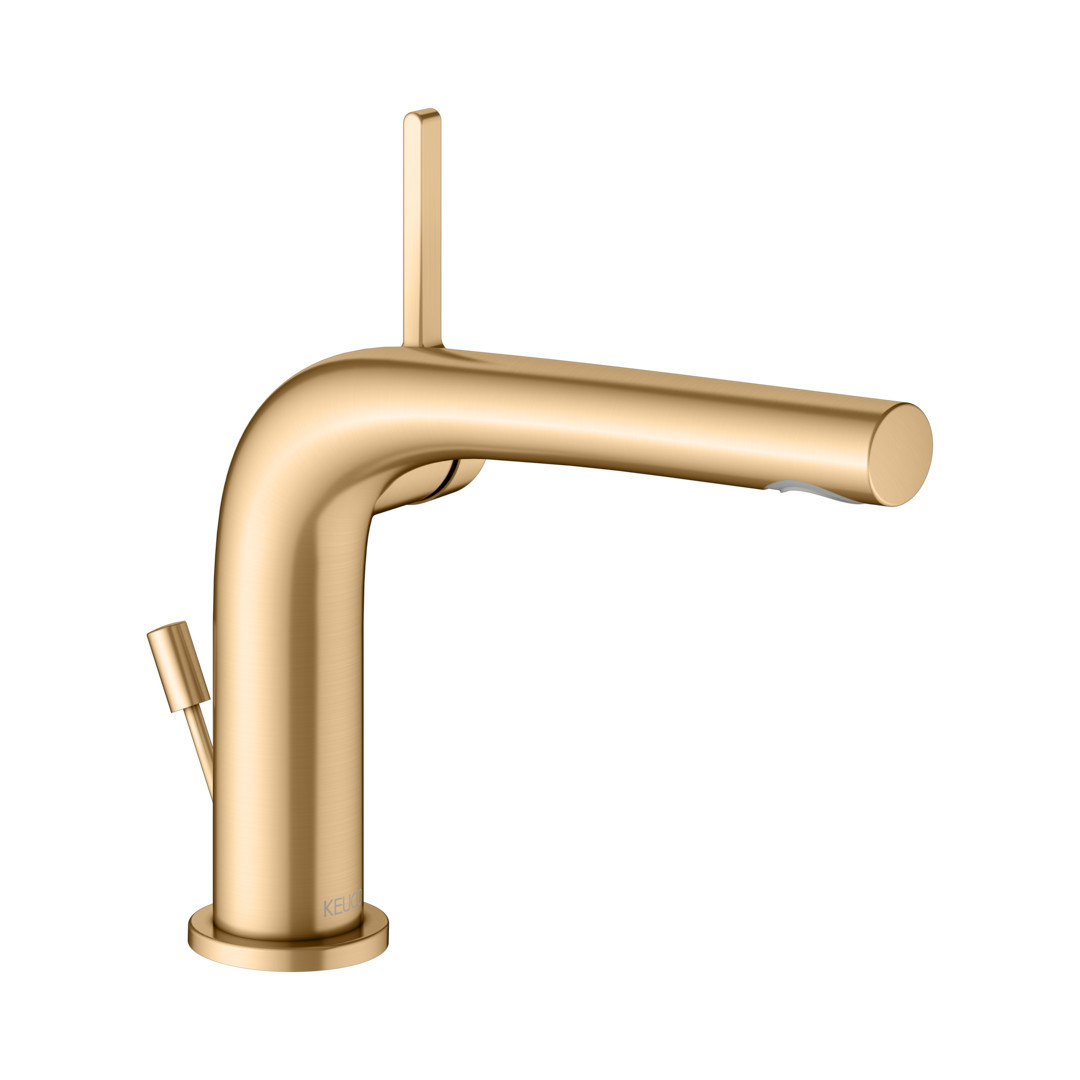 KEUCO Waschtisch-Einhebelmischer 120 Edition 400 Ausladung 153mm, mit Ablaufgarnitur, messing gebürstet