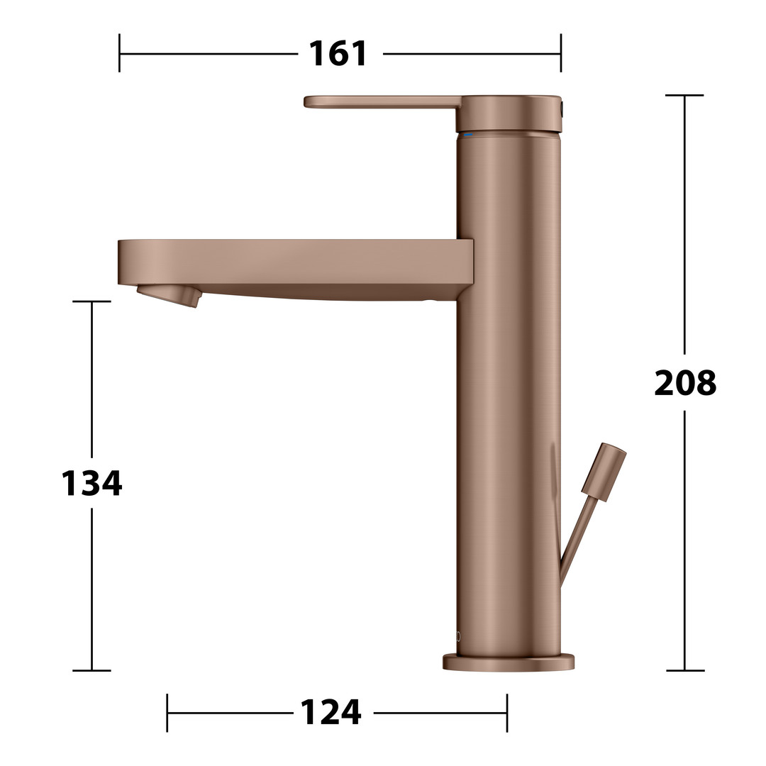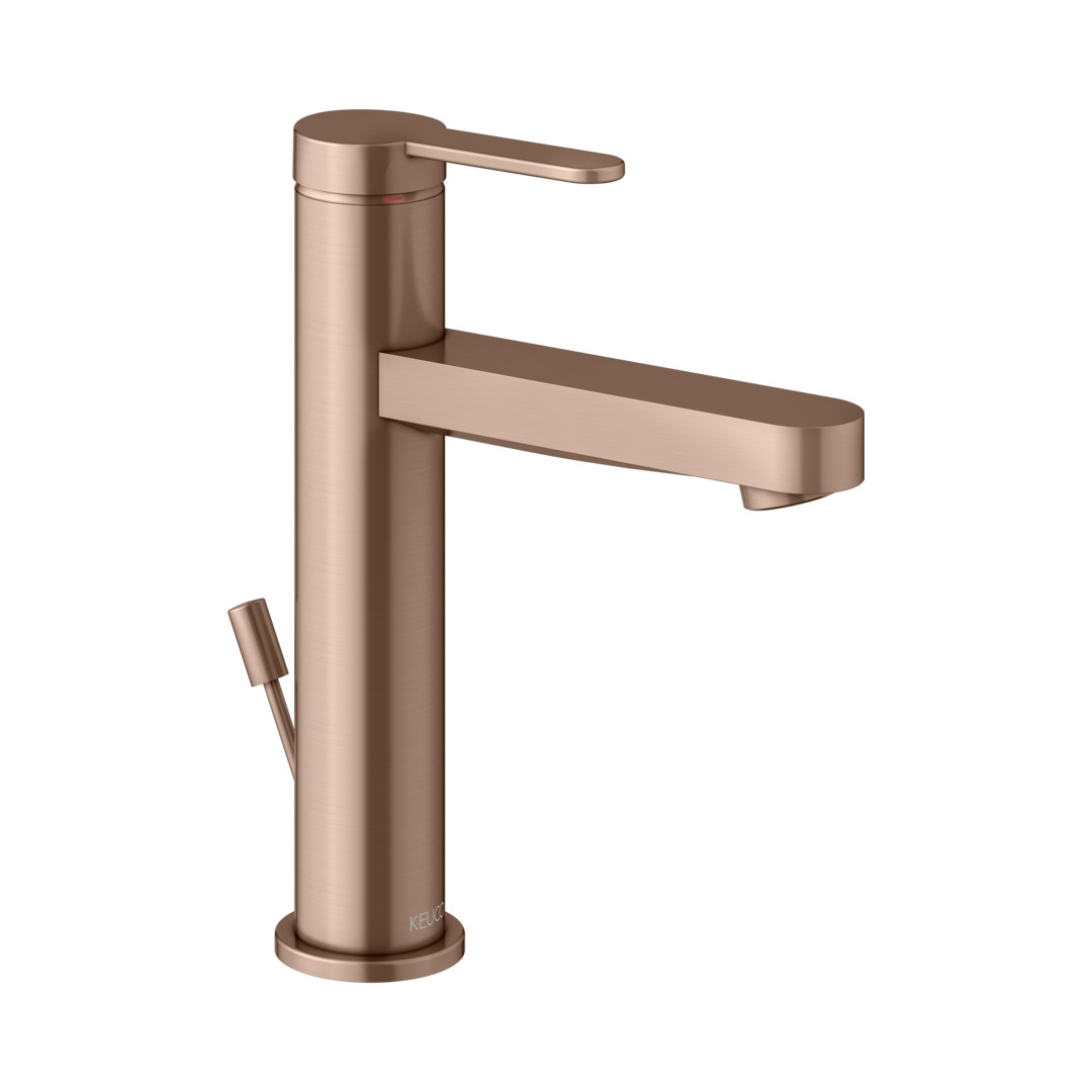 KEUCO Waschtisch-Einhebelmischer 130 IXMO Flat Ausladung 124mm, mit Ablaufgarnitur, rotgold gebürstet
