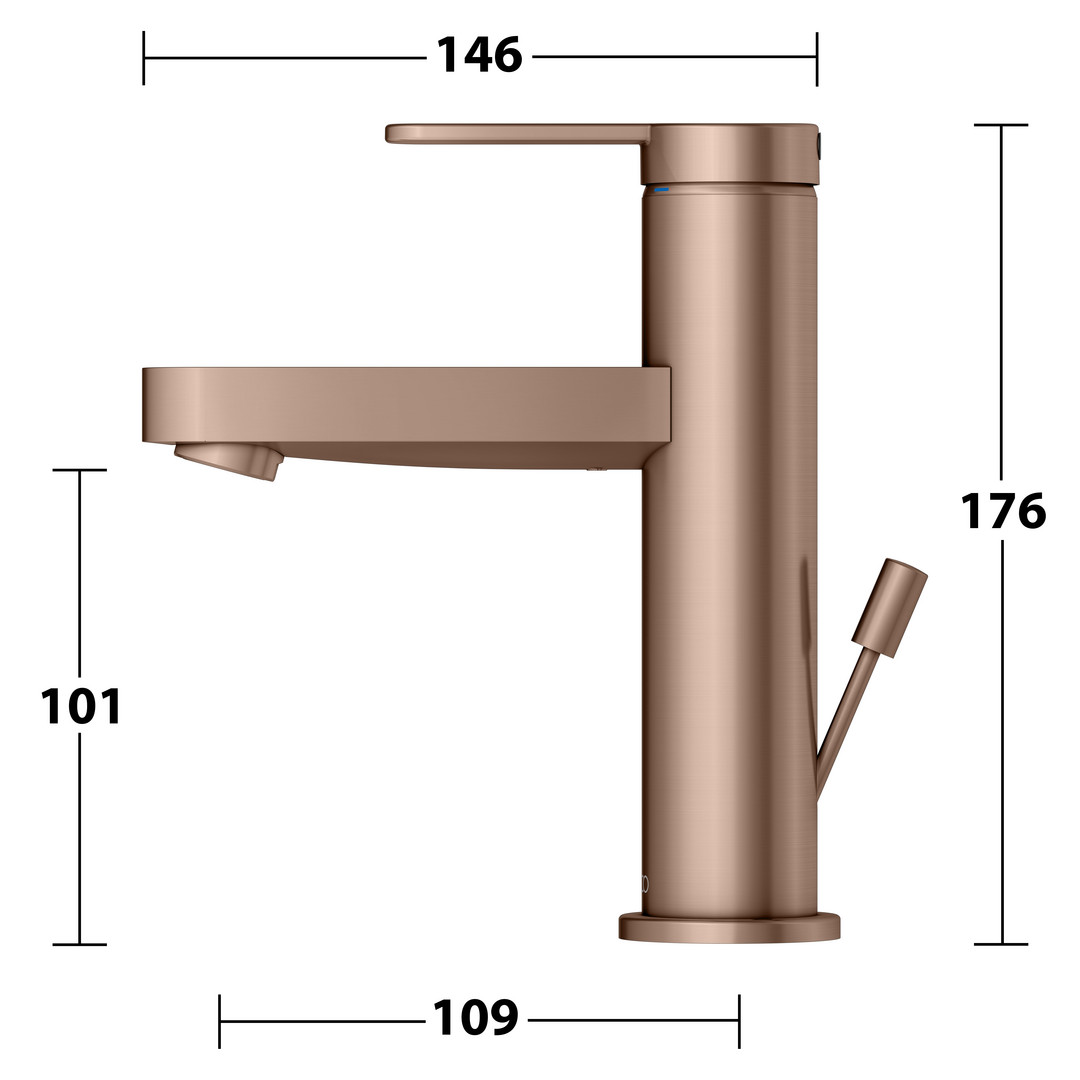 KEUCO Waschtisch-Einhebelmischer 100 IXMO Flat Ausladung 109mm, mit Ablaufgarnitur, rotgold gebürstet