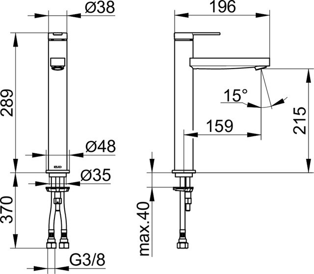 KEUCO Waschtisch-Einhebelmischer 210 IXMO Flat Ausladung 159mm, ohne Ablaufgarnitur, verchromt K20579151
