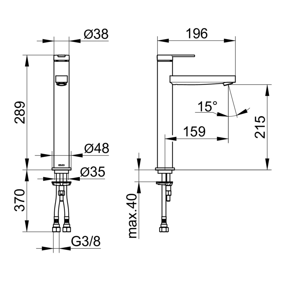 Auslaufhöhe 215 mm, Einlochmontage mit Schnell-Montage-System, Anschlussart Anschlussschläuche G 3/8, Mischwasserkartusche mit keramischen Dichtscheiben, mit Temperaturbegrenzung, Strahlregler M 24 x 1, Strahlwinkeln+/-6° verstellbar, Durchflussmenge begrenzt auf 7,6 l/min, für Durchlauferhitzer geeignet, geräuschgeprüft