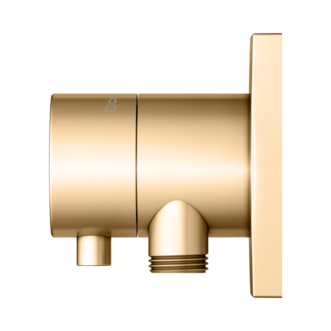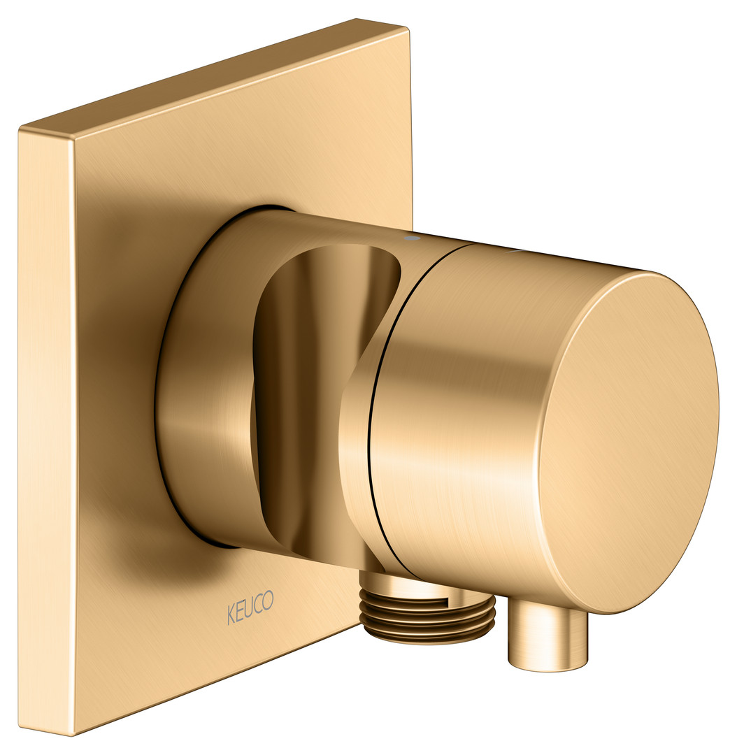 KEUCO Fertigmontageset IXMO messing gebürstet, UP-Absperrventil, Rosette eckig, mit Schlauchanschluss, Brausehalter