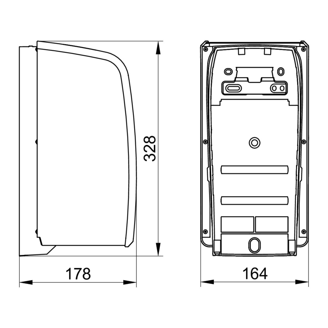 Betätigung von unten, Befüllung durch abschließbares Klappgehäuse, diebstahlgesichert, mit Rollenbremse, Rollenanzahl 2 Stk., verdeckte Befestigung, zum Schrauben, mit Befestigungs-Set, Energieversorgung über energyBOX S oder Netzkabel, Spannung 12 V, Einstellungen, Informationen zu Füllstand, Energiestatus und Servicebedarf sind über die App oder im Hagleitner Hygieneportal abrufbar