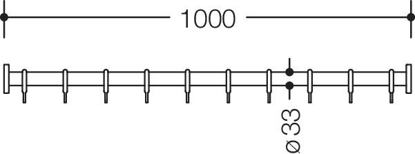 aus Polyamid mit Aluminiumkern, mit 10 Vorhangringen, kann bauseits bis auf 200 mm gekürzt werden, ø 33 mm, Rosetten ø 70 mm