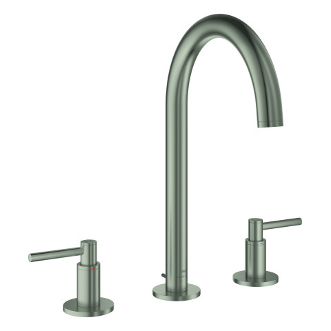 GROHE Waschtisch-3-Loch-Armatur Atrio 1/2", L-Size, mit Hebelgriffen, Zugstangen-Ablaufgarnitur, satin steel