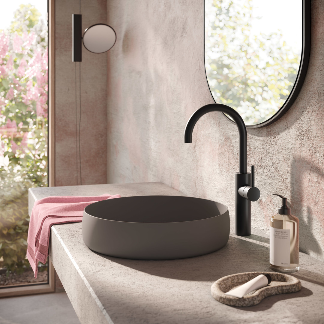 Herzbach Waschtisch-Einhebelmischer Deep L-Size, ohne Ablaufgarnitur, Schwarz matt