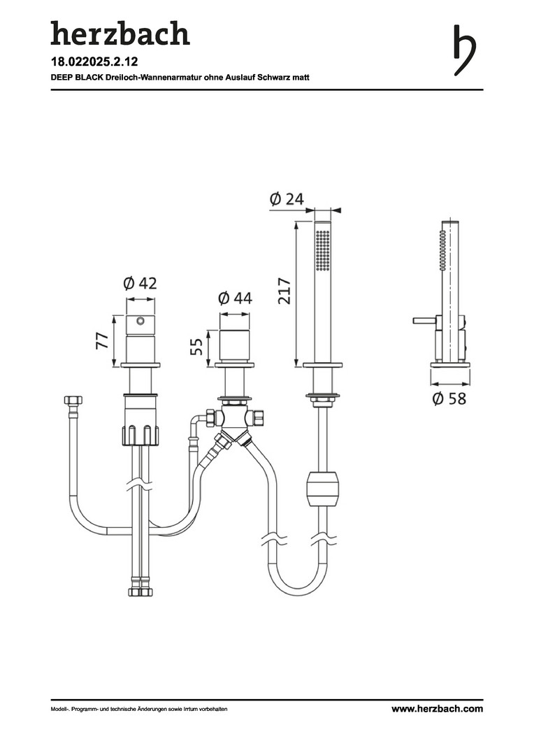 Herzbach Fertigmontageset Deep Wannen-3-Loch-Armatur, Schwarz matt K23718434