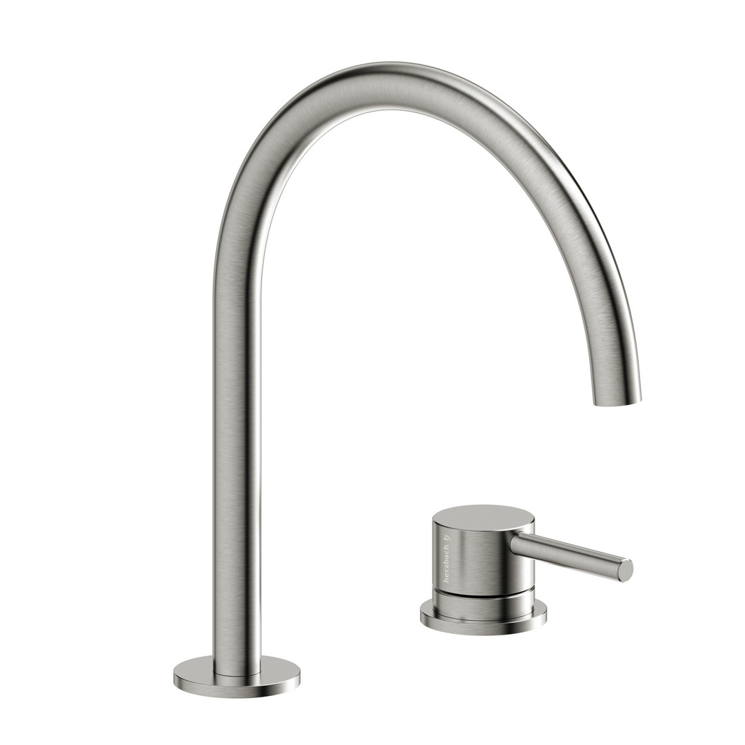 Herzbach Fertigmontageset Deep Waschtisch-Zweilocharmatur, 220mm, ohne Ablaufgarnitur, Edelstahl gebürstet