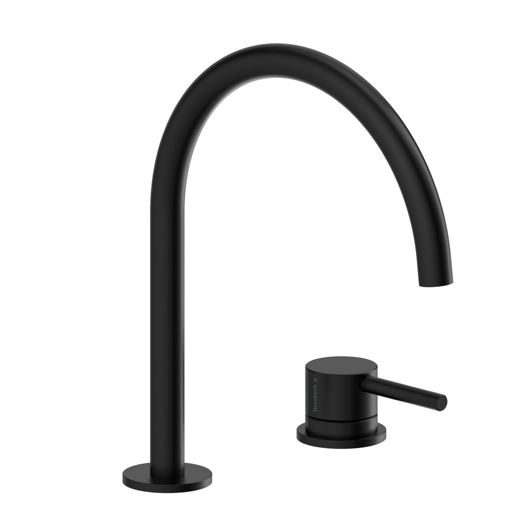 Herzbach Fertigmontageset Deep Waschtisch-Zweilocharmatur, 220mm, ohne Ablaufgarnitur, Schwarz matt