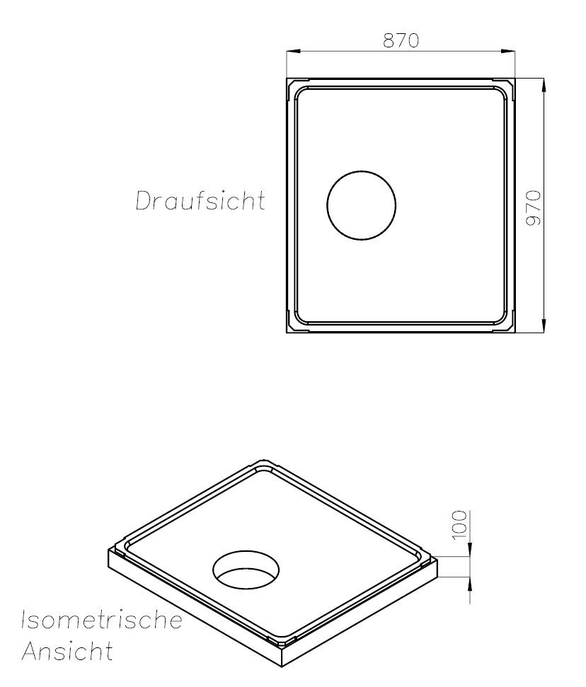 Schedel Duschwannenträger Hoesch Tierra 100 x 90 x 3 cm, Höhe 10cm