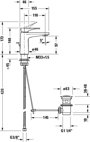 Duravit Waschtisch-Einhebelmischer Tulum S FreshStart Ausladung 110mm, mit Zugstangen-Ablaufgarnitur, chrom K20578637