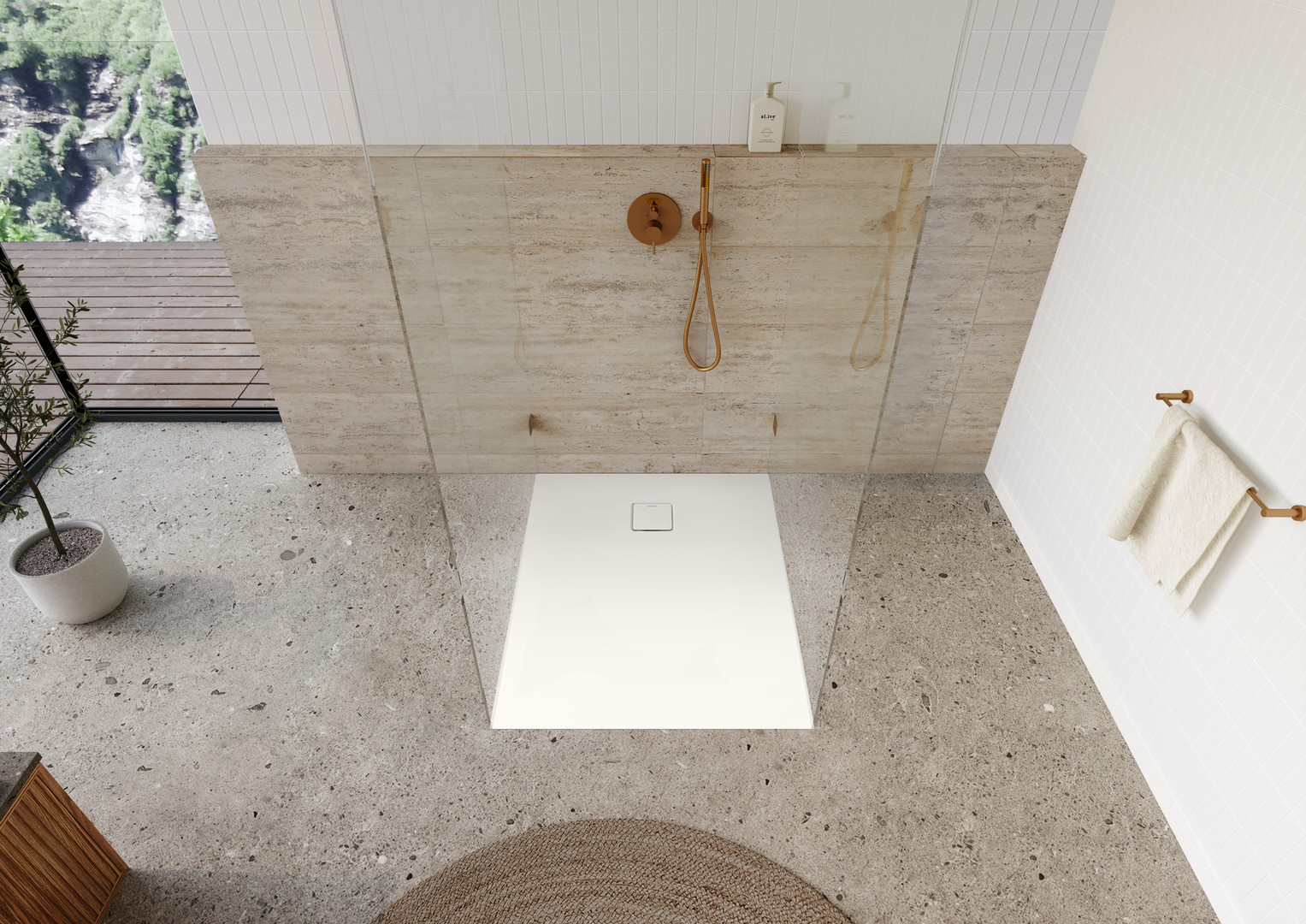 mit emailliertem Ablaufdeckel mit CLICK'N CLEAN Öffnungsmechanismus und Haarfangfunktion, mit vollflächiger Rutschhemmung INVISIBLE GRIP, an vier Seiten schwellenlos, ermöglicht barrierefreien Einstieg