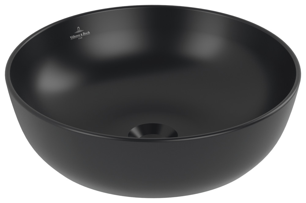V&B Aufsatzwaschtisch Artis d= 43cm, rund, ohne Hahnloch, ohne Überlauf, Pure black C-plus