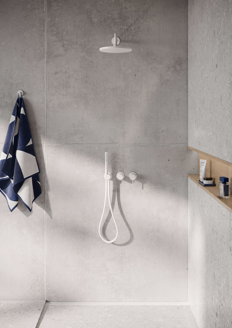 Herzbach Fertigmontageset MODUL7 Brause-Einhebelmischer, mit Stabhandbrause, 2/3 Verbraucher, weiß matt